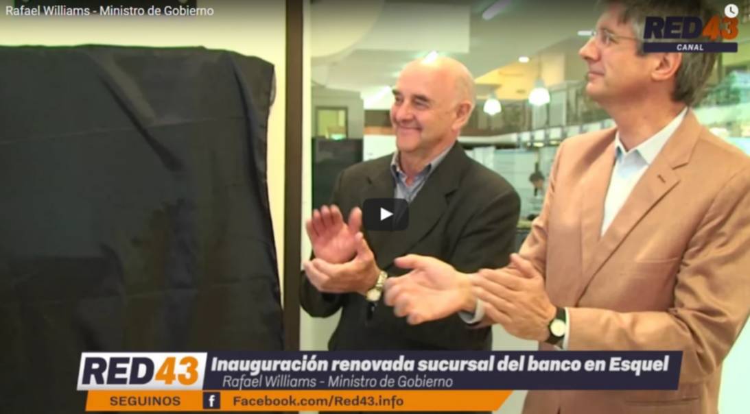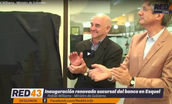 El Ministro de Gobierno, Rafael Williams, hizo uso de la palabra en lo que fue la inauguración de las modernas instalaciones del Banco del Chubut. Se mostró contento por el apoyo que viene teniendo el Banco hacia los sectores productivos y destacó la labor de Das Neves afirmando que “el Banco fue recuperado por decisión del Gobernador”. Mirá el video en Red43 Canal Online.