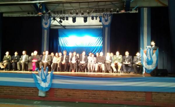 Organizado por la Municipalidad de Esquel, se realizó en el Gimnasio Municipal "León Camilo Catena” el acto oficial por el Bicentenario de la Declaración de la Independencia. El mismo es presidido por el Intendente Sergio Ongarato.