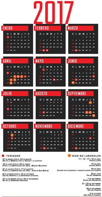 De este modo, los días no laborables serán 16 y dejarán de tener vigencia los feriados turísticos fijados por decreto en 2010, cuando se dispuso que los feriados del 17 de Agosto, 12 de Octubre y 20 de Noviembre se cumplan siempre en días lunes y se sumaran dos feriados feriados con fines turísticos por año.