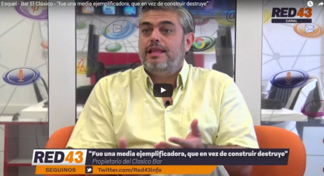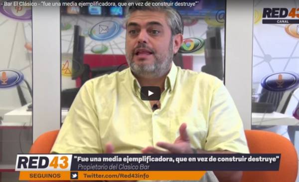 El pasado domingo por la tarde clausuraron el Bar “El Clásico” ante la denuncia de algunos vecinos por ruidos molestos. Sin embargo, según comenta Marcelo Guzmán, propietario del lugar, comenta a Red43 que “fue una medida ejemplificadora y extrema, que en lugar de construír, destruye”. Estas medidas “te quitan las ganas de invertir y de apostar” afirma Guzmán; no te pierdas el video en Red43 Canal Online.