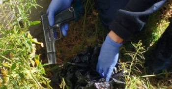 El arma una 9 milímetros se encontraba en una bolsa negra, enterrada cerca de los domicilios allanados unos días atrás.