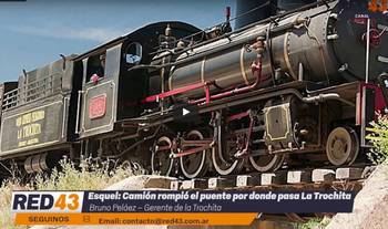 El Gerente del Viejo Expreso Patagónico “La Trochita”, Bruno Peláez, comentó a Red43 el motivo por el cual se han suspendidos los viajes del tradicional “trencito”. El pasado sábado, un camión quiso pasar por debajo del puente que se encuentra en la cantera, en cercanías de la calle Guido Spano de Esquel. Al parecer, el conductor no se dio cuenta que el camión tenía mayores dimensiones que el sector donde debía acceder y con la parte superior del rodado provocó daños en la estructura del puente donde circula La Trochita. Mirá el video con la nota a Peláez.