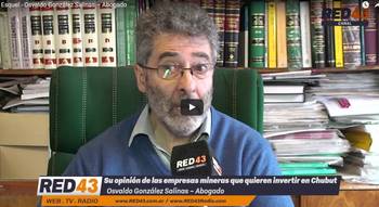Red43 dialogó con el Abogado Osvaldo González Salinas, quien brindó su opinión acerca de la ya conocida intención de una empresa minera, de invertir millones en la provincia del Chubut. Al respecto dijo que la postura en Esquel ya está definida, refiriéndose a la votación en contra que realizó el 81% de la población. Mencionó el derrame registrado hace unos días en San Juan afirmando que “estas cosas van a seguir pasando, son inevitables”. Mirá el video completo en Red43 Canal Online.