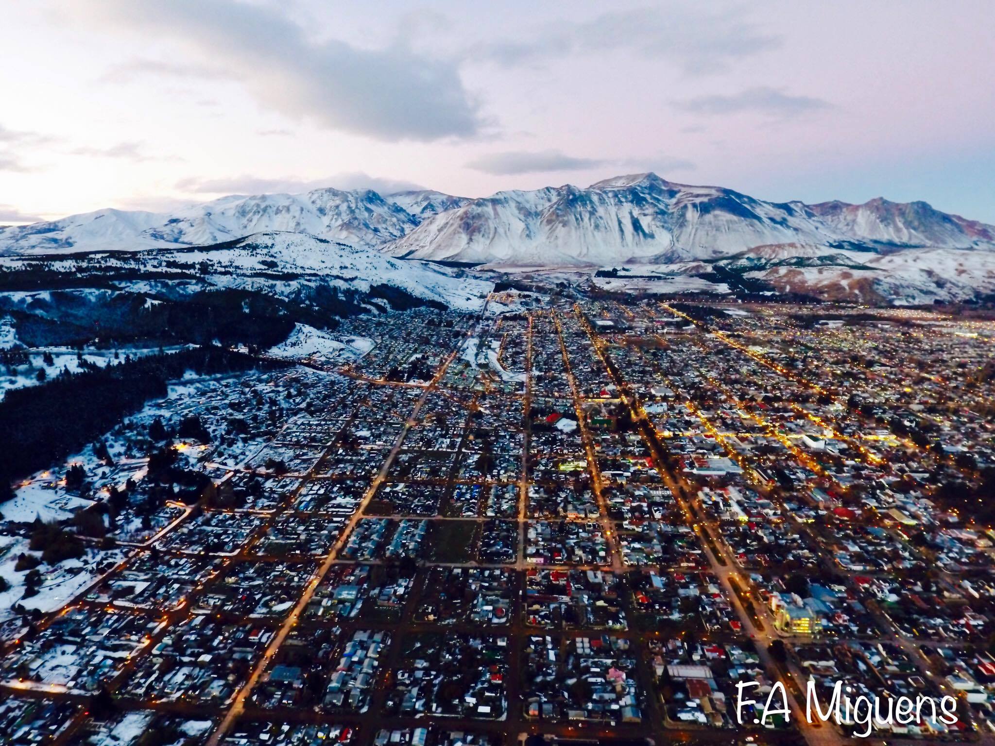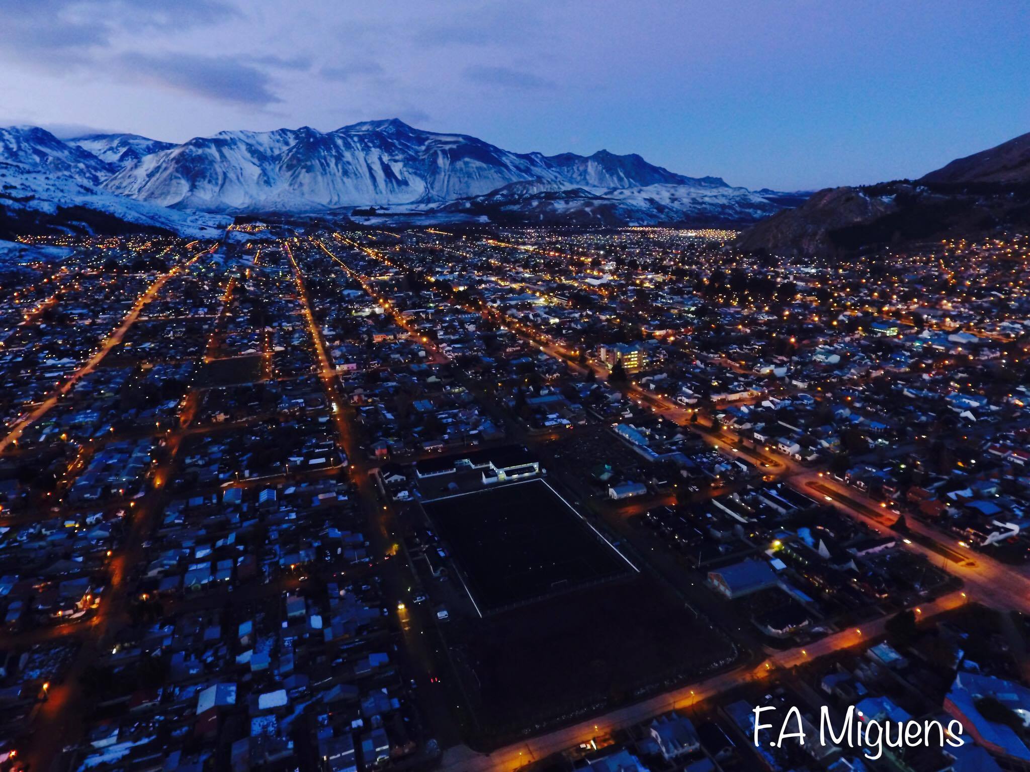 Hermosas fotos de la ciudad de Esquel, desde un Drone, gentileza de Fernando Agustín Miguens, quien se comunicó con Red43 para dar a conocer estas cuatro postales de la ciudad. En las mismas, se puede observar la ciudad con la nevada de los últimos días, las calles iluminadas, la cancha de fútbol del Club Belgrano, etc.