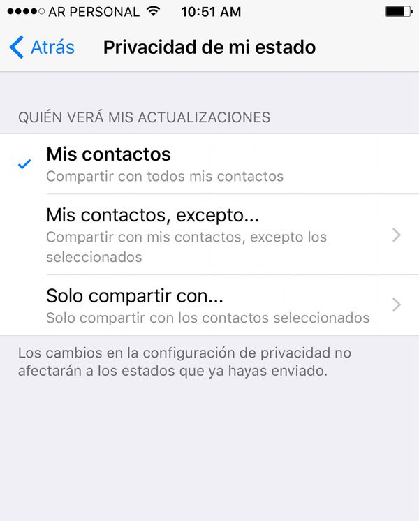Una vez hecho esto, los contactos silenciados no figurarán en la pestaña de los estados.