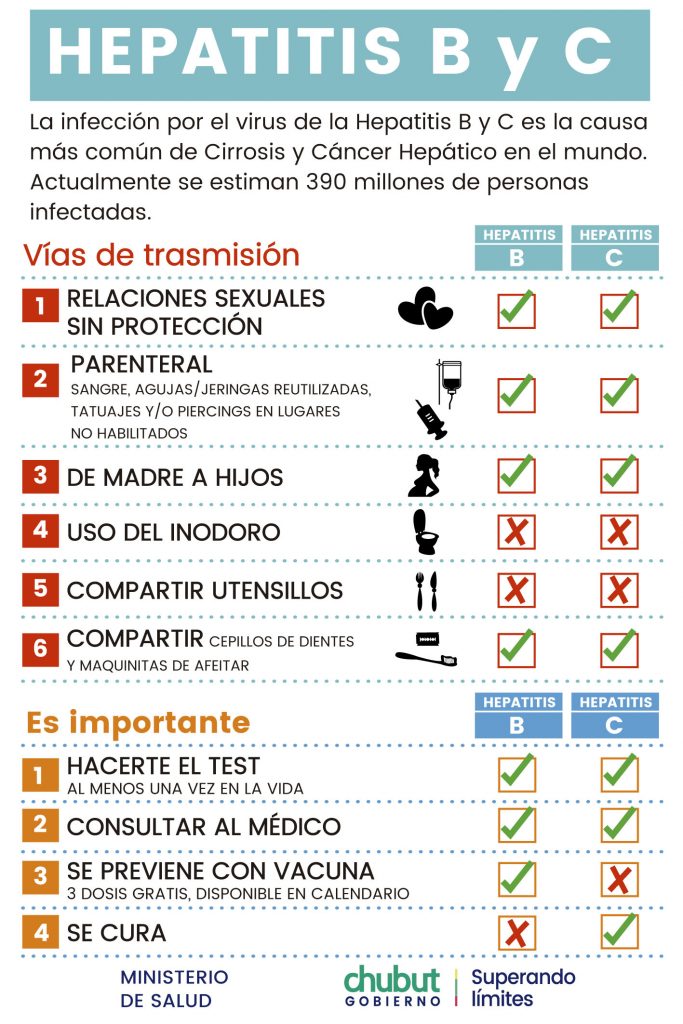 El Ministerio de Salud del Chubut, a través de la Dirección Provincial de Patologías Prevalentes y Epidemiología, comenzó a realizar este lunes diversas actividades de promoción y prevención de salud en el marco de “La Semana de las Hepatitis”, una iniciativa de carácter provincial que se organizó para celebrar el “Día Mundial contra las Hepatitis Virales”, que se conmemora el día 28 de julio de cada año.
