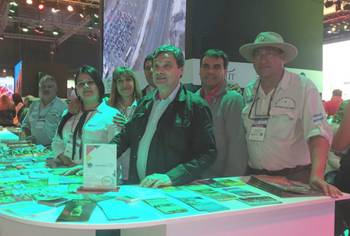 El gobierno de Chubut montó un stand donde están representados todos los destinos turísticos de la provincia. El intendente Raúl Ibarra visitó la muestra y dialogó con el ministro de Turismo, Herman Müller.