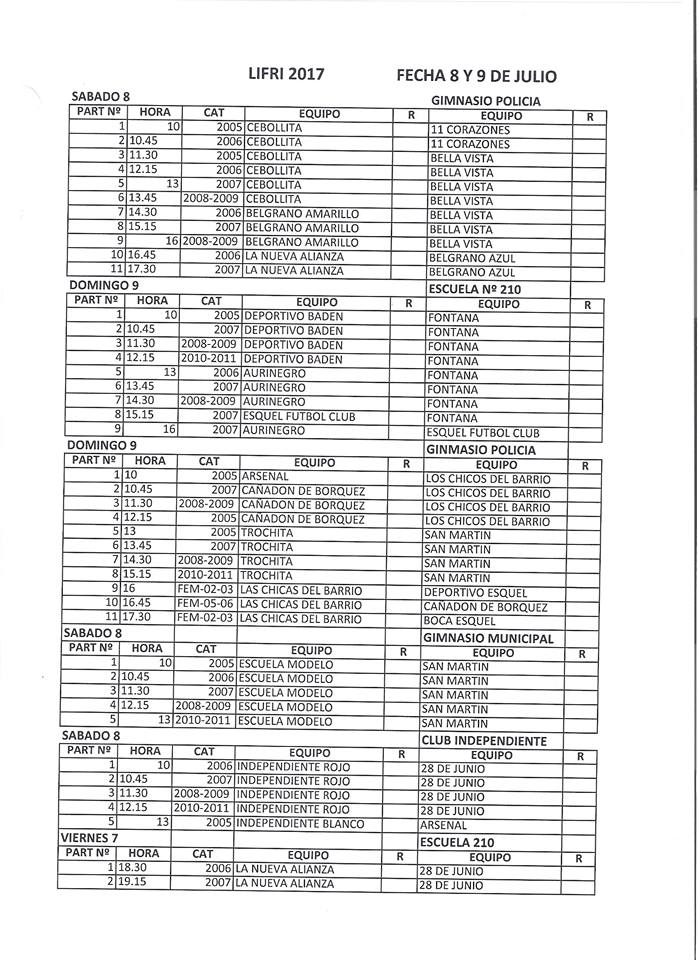 Este fin de semana se jugará una nueva fecha de la LIFRI, en las diferentes sedes: SUM Esc. N°210 (Baden), Club Independiente, Gimnasio de la Policía y Gimnasio Municipal.