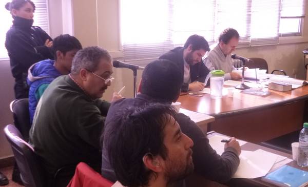 La audiencia se realizó por la tarde y se extendió hasta las 21:30 horas. Se analizó el modo en que se produjo la detención, los términos de la apertura de investigación y el pedido fiscal de medidas de coerción para los cuatro imputados. Dos de ellos prestaron declaración, dando su versión de los hechos e incriminando respecto del crimen a uno de los detenidos. Uno de los que declaró es sordomudo, por esa causa toda la audiencia contó con una intérprete que medió con lenguaje de señas para garantizar su debida participación.