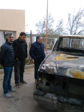 Cisterna recorrió las diferentes dependencias municipales afectadas por el fuego en compañía del intendente de Paso de Indios, Mario Pichiñán y concejales de la localidad. El ministro observó los daños en un corralón municipal, así como los bienes del Estado alcanzados por las llamas, entre ellos una ambulancia, una camioneta de reparto, un autoelevador y materiales para la construcción. También supervisó las oficinas donde se quemó mobiliario y parte de la mampostería del edificio.