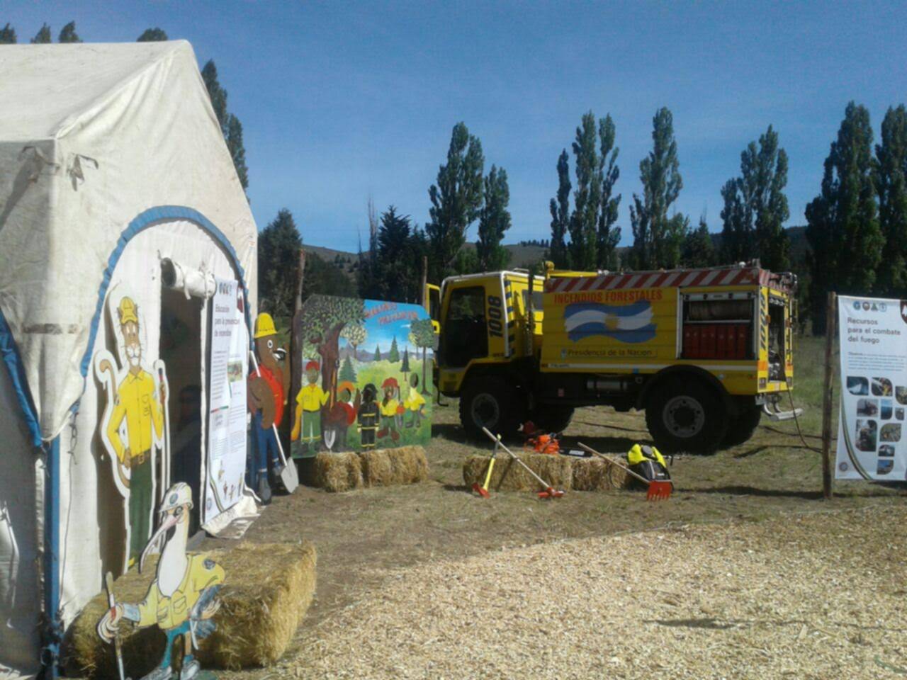 Para ello se dispuso de tres espacios diferenciados: uno con las propuestas lúdicas y educativas que se acercan a las escuelas todos los años; otro en el que se recrearon acciones de monitoreo y planificación para el manejo del fuego durante un incendio y, un tercero con equipamiento utilizado para el control de incendios con demostraciones programadas.