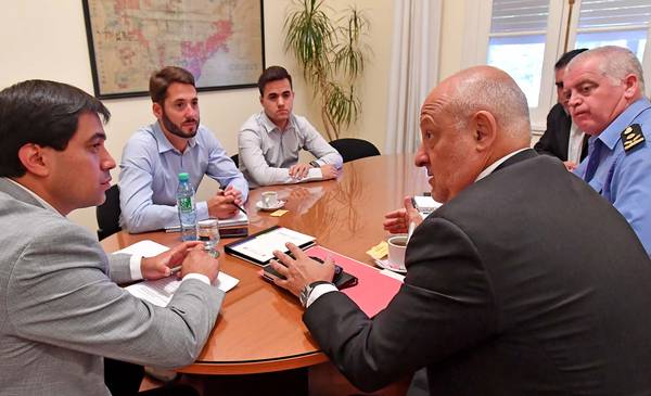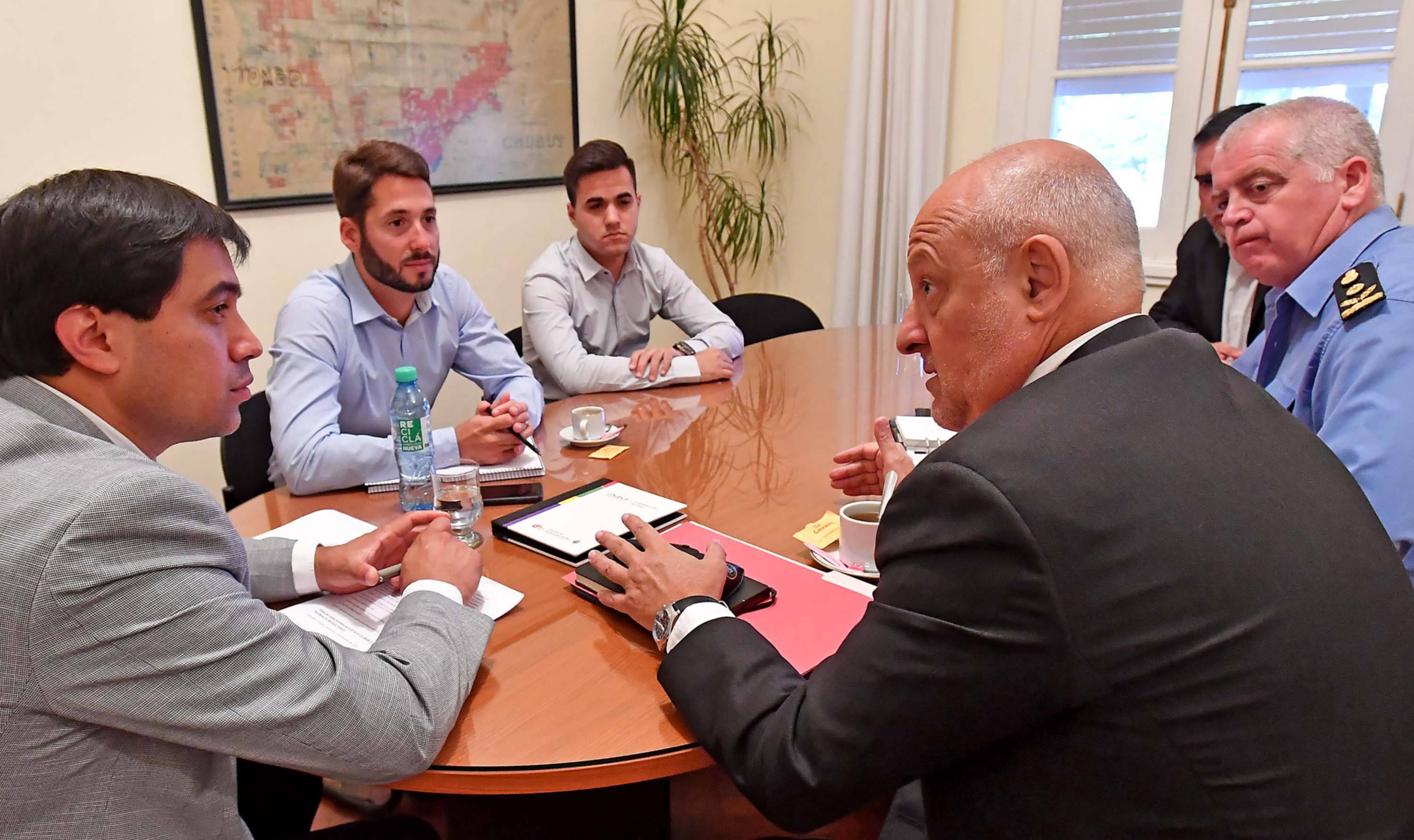 El ministro de Gobierno del Chubut, Pablo Durán, acompañado por el subsecretario de Gobierno, Alejandro Apphesberho, recibió este martes en Rawson al secretario de Planificación y Gestión del Superior Tribunal de Justicia, Guillermo Cosentino, al jefe del Área de Investigaciones de la Policía del Chubut, Víctor Hugo Acosta, y al director de la Policía Judicial, Nery Pérez, con el objetivo de planificar un trabajo articulado con el fin de intercambiar información sobre los procesos judiciales.
