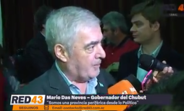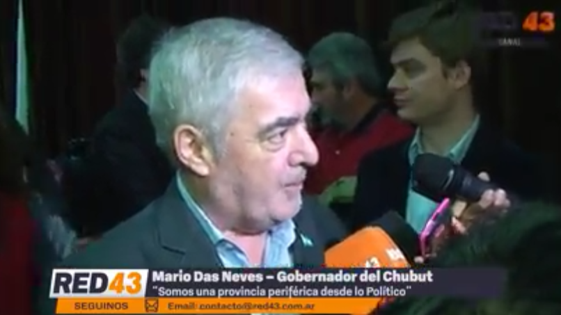 Mario Das Neves se encuentra en Buenos Aires para mantener una reunión con Mauricio Macri por anuncios de millonarias inversiones de Pan American Energy en Chubut. En la jornada de ayer, luego de reunirse con Sergio Massa, confirmó a Red43 que “somos desde lo político una provincia periférica” y que “no podemos quedar aislados”. Mira la nota en Red43 Canal.
