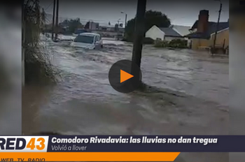 Tras las incesantes lluvias que azotan Comodoro Rivadavia la situación empeoró trágicamente declarando el estado de “desastre”. Crece el número de evacuados, los centros están colmados y las personas quedan imposibilitadas de salir de sus casas dado que varias calles se han transformado literalmente en ríos. Impactante video de Guillermo Moyano para Red43Canal agencia Comodoro Rivadavia.