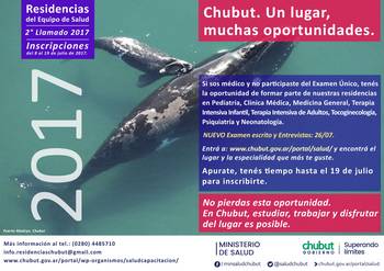 El Ministerio de Salud del Chubut que conduce Ignacio Hernández convoca a inscribirse al 2° Llamado del año para concursar los cargos vacantes en las Residencias del Equipo de Salud 2017, el cual se abrió el 8 de julio y se extenderá hasta el día 19 de este mes y, en esta oportunidad, está dirigido a profesionales médicos de todo el país, hayan rendido o no el Examen Único Nacional que se tomó el pasado mes de abril.