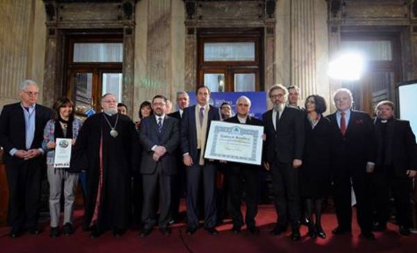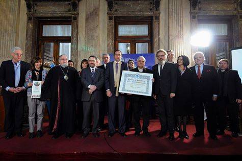 El senador chubutense Alfredo Luenzo acompañó a su par catamarqueño Dalmacio Mera en la entrega de la “Mención de Honor Senador Domingo Faustino Sarmiento” a la encíclica “Laudado Si”, elaborada por el Papa Francisco.