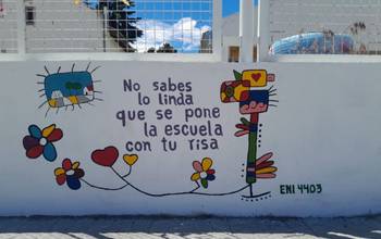 Estudiantes del turno vespertino inauguraron ayer un mural basado en bocetos de Emilio Ferrero, tras semanas de trabajo fuera de horario.