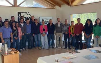 El escenario es la ciudad de Córdoba, donde se encuentra el intendente, Matías Taccetta, junto al intendente de Lago Puelo, Iván Fernández, el de El Bolsón, Bruno Pogliano, y el intendente de Epuyén, José Contreras.