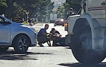 El siniestro vial ocurrió este miércoles en la intersección de 25 de Mayo y Alvear. La víctima fue asistida por personal médico en el lugar y trasladada de urgencia al Hospital Zonal de Esquel.