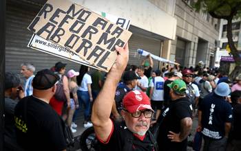 El dirigente acompañó la movilización de las centrales obreras contra la reforma laboral. Aseguró que el pueblo fue engañado y que la gente ya no llega a fin de mes.